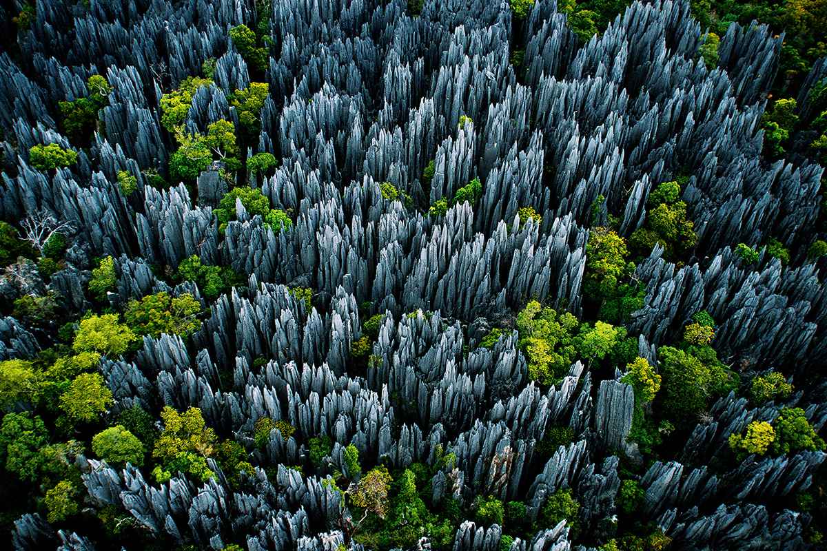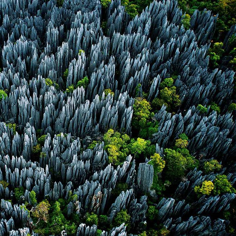 je pro tento „kamenný les“ na Madagaskaru zcela příznačný. Díky vlivům dešťových srážek se zdejší vápencové skály vytvarovaly do tak ostrých tvarů, že zde dokáže žít jen několik málo živočichů v čele se vzácnými lemury.